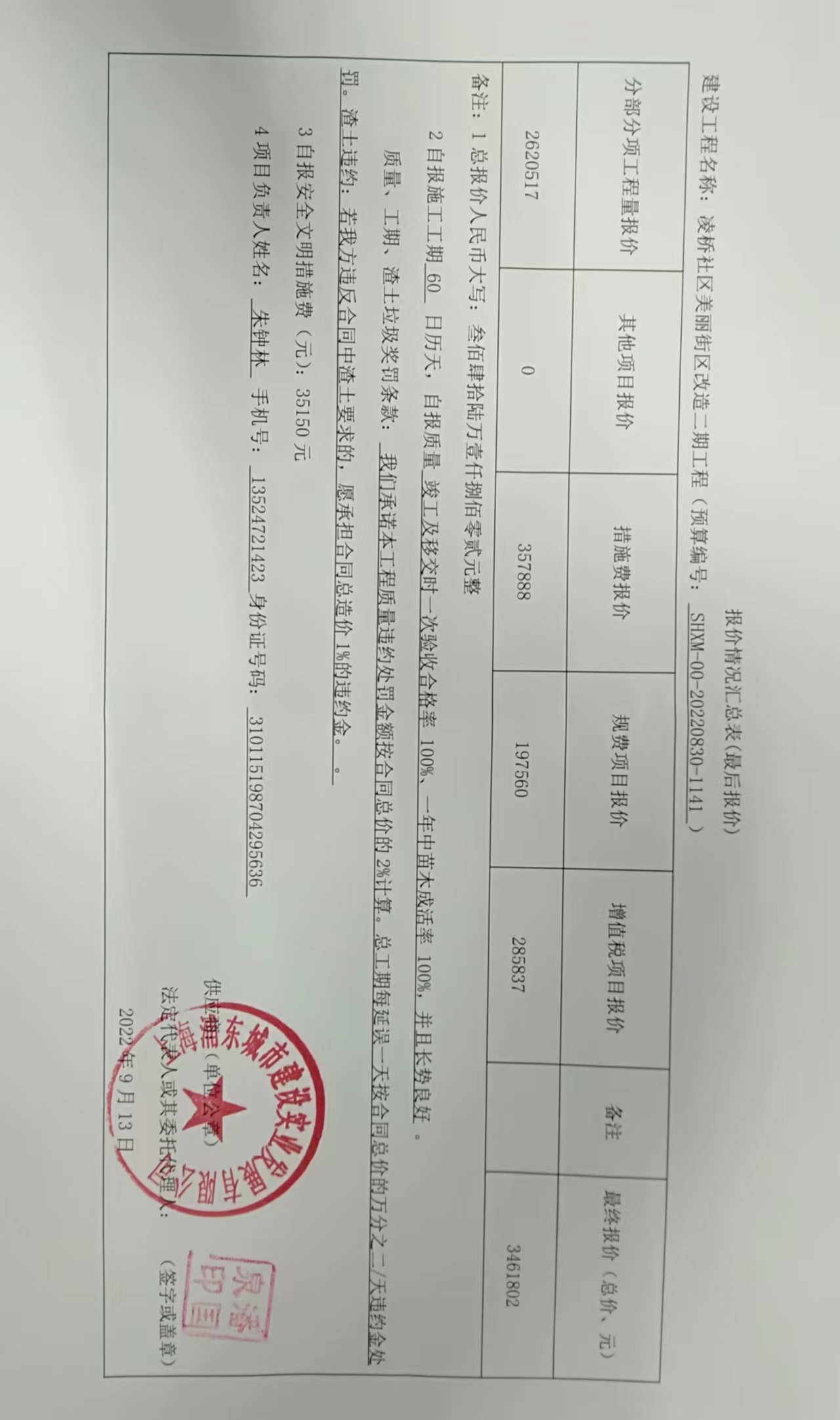 | 1 | 凌桥社区美丽街区改造二期工程 | 凌桥社区美丽街区改造二期工程 | 主要对双江路、金色郦苑、高攀路、康悦路、顺凌路等进行绿化提升改造,主要工作内容包括新建跑道、坐凳、汀步、廊架、旱溪,栽植乔木、灌木、绿篱,铺种草皮,绿地养护,花岗岩铺装,场地平整等。 | 60日历天 | 朱钟林 | 沪建安B(2018)7008727; 绿化林业专业中级职称 |